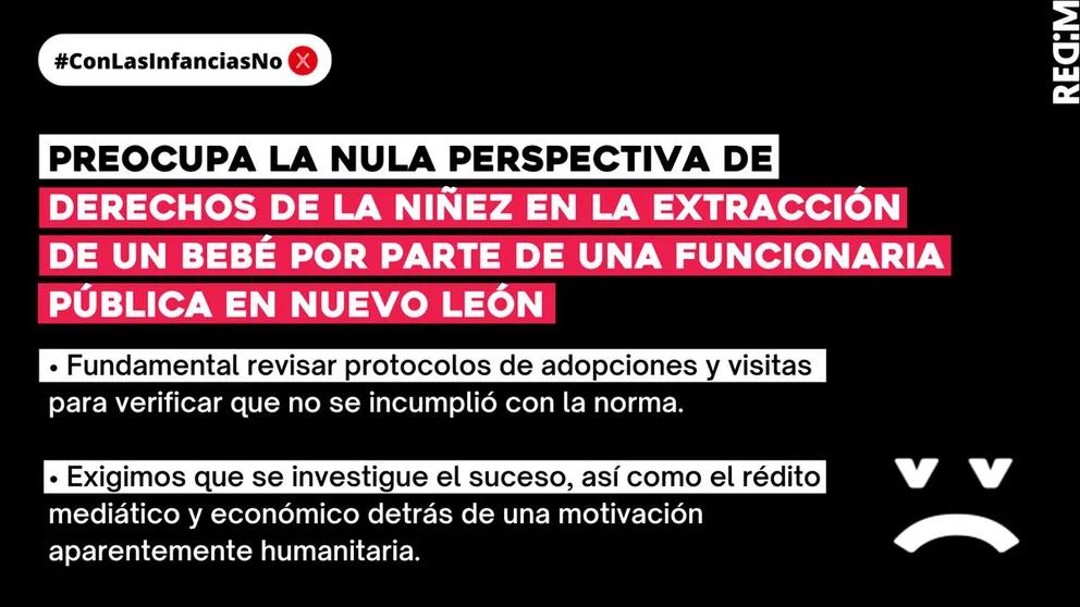 [1] REDIM (2022, 16 de enero). Preocupa la nula perspectiva de derechos de la niñez en la extracción de un bebé por parte de una funcionaria pública en Nuevo León