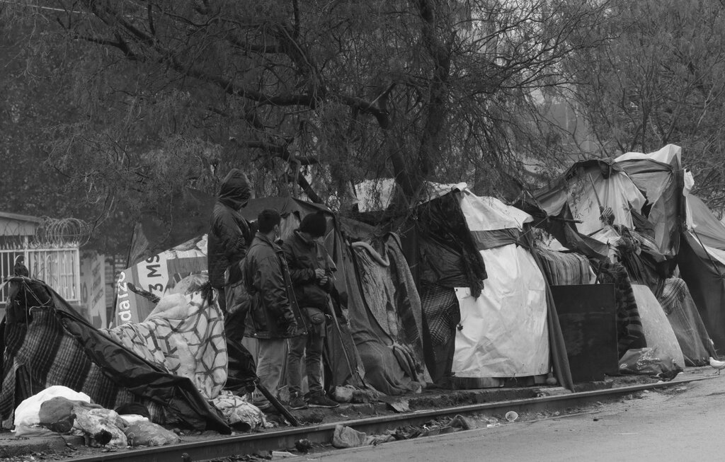 ** Agradecemos a Juan Cedillo el obsequio de las fotos que ilustran esta columna. Serie tomada en el corredor formado por migrantes en la calle José María Luis Mora, al norte de Monterrey. Enero de 2022.