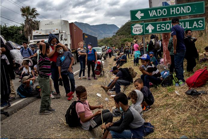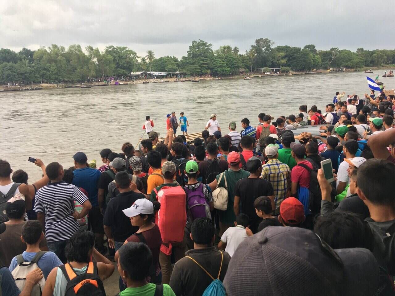 **Portada: personas que esperan cruzar e México desde la orilla del Suchiate en Guatemala. Crédito Plaza Pública