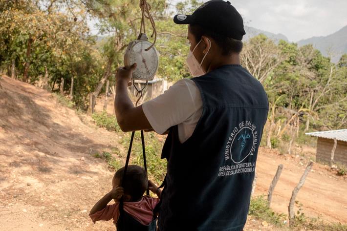 Figura 4. Medición de peso y estatura a la niñez en una aldea de Jocotán, Guatemala