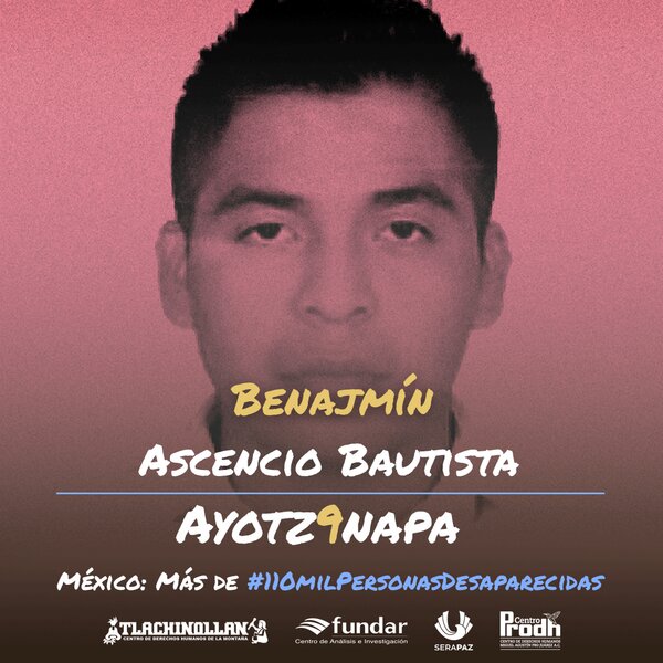 ANTONIO y BENJAMÍN ¡Presentes! 8Sep 2023Añadir un comentario 2014-26 de Septiembre-2023. Nos sumamos a la lucha contra el olvido. Nos faltan 43 y más de 100 mil personas desaparecidas en México. ¡DÓNDE ESTÁ! ¡DÓNDE ESTÁ! Comparte esto: Haz clic para compartir en X (Se abre en una ventana nueva) X Haz clic para compartir en Facebook (Se abre en una ventana nueva) Facebook Me gusta Cargando...