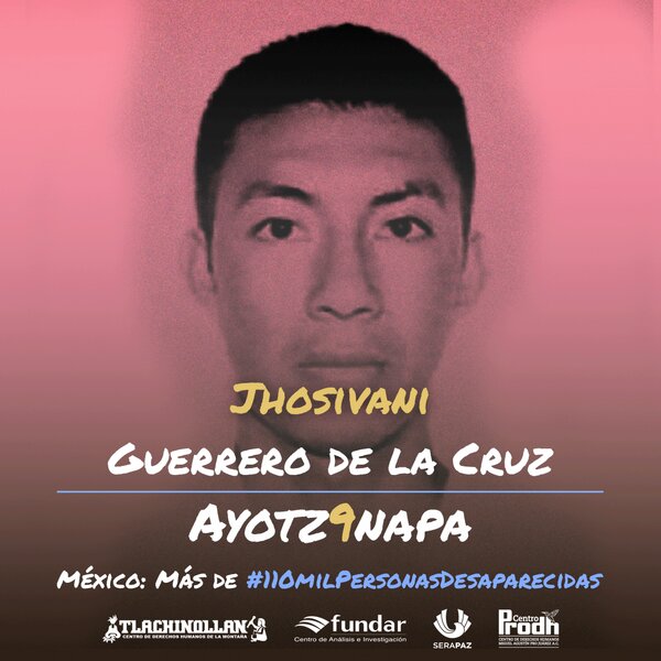 JHOSIVANI y JULIO CÉSAR ¡Presentes! 21Sep 202321 Sep 2023Añadir un comentario 2014-26 de Septiembre-2023. Nos sumamos a la lucha contra el olvido. Nos faltan 43 y más de 100 mil personas desaparecidas en México. ¡DÓNDE ESTÁ! ¡DÓNDE ESTÁ! Comparte esto: Haz clic para compartir en X (Se abre en una ventana nueva) X Haz clic para compartir en Facebook (Se abre en una ventana nueva) Facebook Me gusta Cargando...