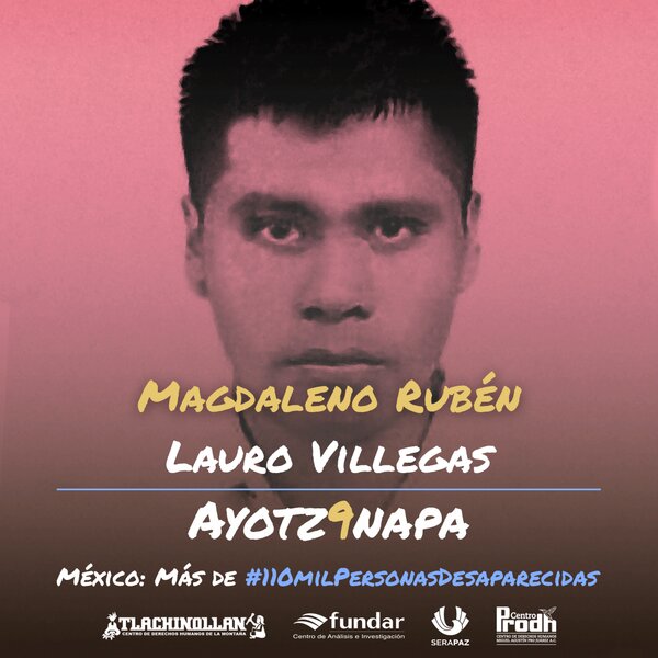 LUIS ÁNGEL y MAGDALENO RUBÉN ¡Presentes! 23Sep 2023Añadir un comentario 2014-26 de Septiembre-2023. Nos sumamos a la lucha contra el olvido. Nos faltan 43 y más de 100 mil personas desaparecidas en México. ¡DÓNDE ESTÁ! ¡DÓNDE ESTÁ! Comparte esto: Haz clic para compartir en X (Se abre en una ventana nueva) X Haz clic para compartir en Facebook (Se abre en una ventana nueva) Facebook Me gusta Cargando...