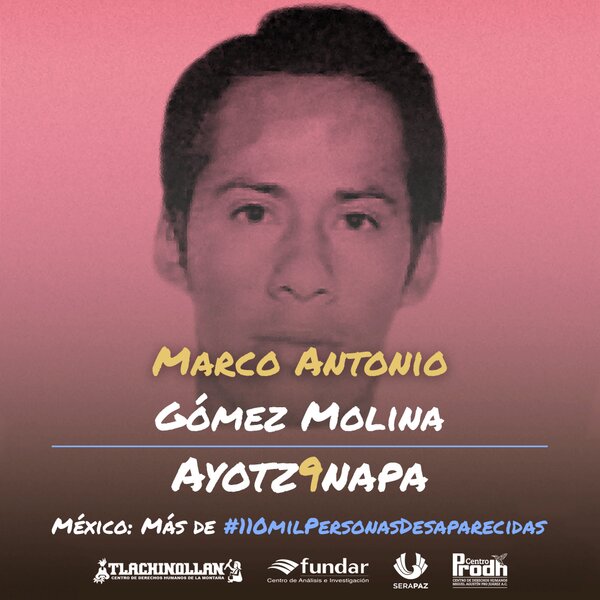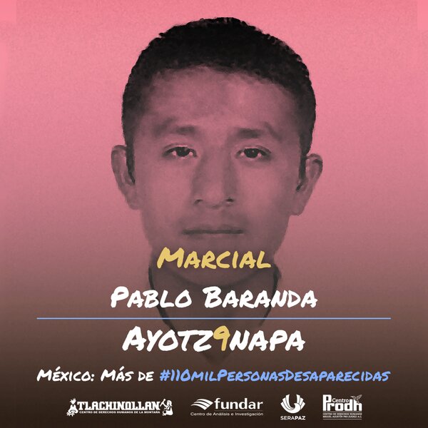 MARCIAL y MARCO ANTONIO ¡Presentes! 24Sep 2023Añadir un comentario 2014-26 de Septiembre-2023. Nos sumamos a la lucha contra el olvido. Nos faltan 43 y más de 100 mil personas desaparecidas en México. ¡DÓNDE ESTÁ! ¡DÓNDE ESTÁ! Comparte esto: Haz clic para compartir en X (Se abre en una ventana nueva) X Haz clic para compartir en Facebook (Se abre en una ventana nueva) Facebook Me gusta Cargando...