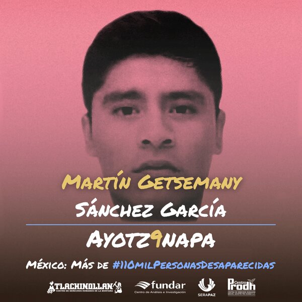 MARTÍN GETSEMANY y MAURICIO ¡Presentes! 25Sep 2023Añadir un comentario 2014-26 de Septiembre-2023. Nos sumamos a la lucha contra el olvido. Nos faltan 43 y más de 100 mil personas desaparecidas en México. ¡DÓNDE ESTÁ! ¡DÓNDE ESTÁ! Comparte esto: Haz clic para compartir en X (Se abre en una ventana nueva) X Haz clic para compartir en Facebook (Se abre en una ventana nueva) Facebook Me gusta Cargando...